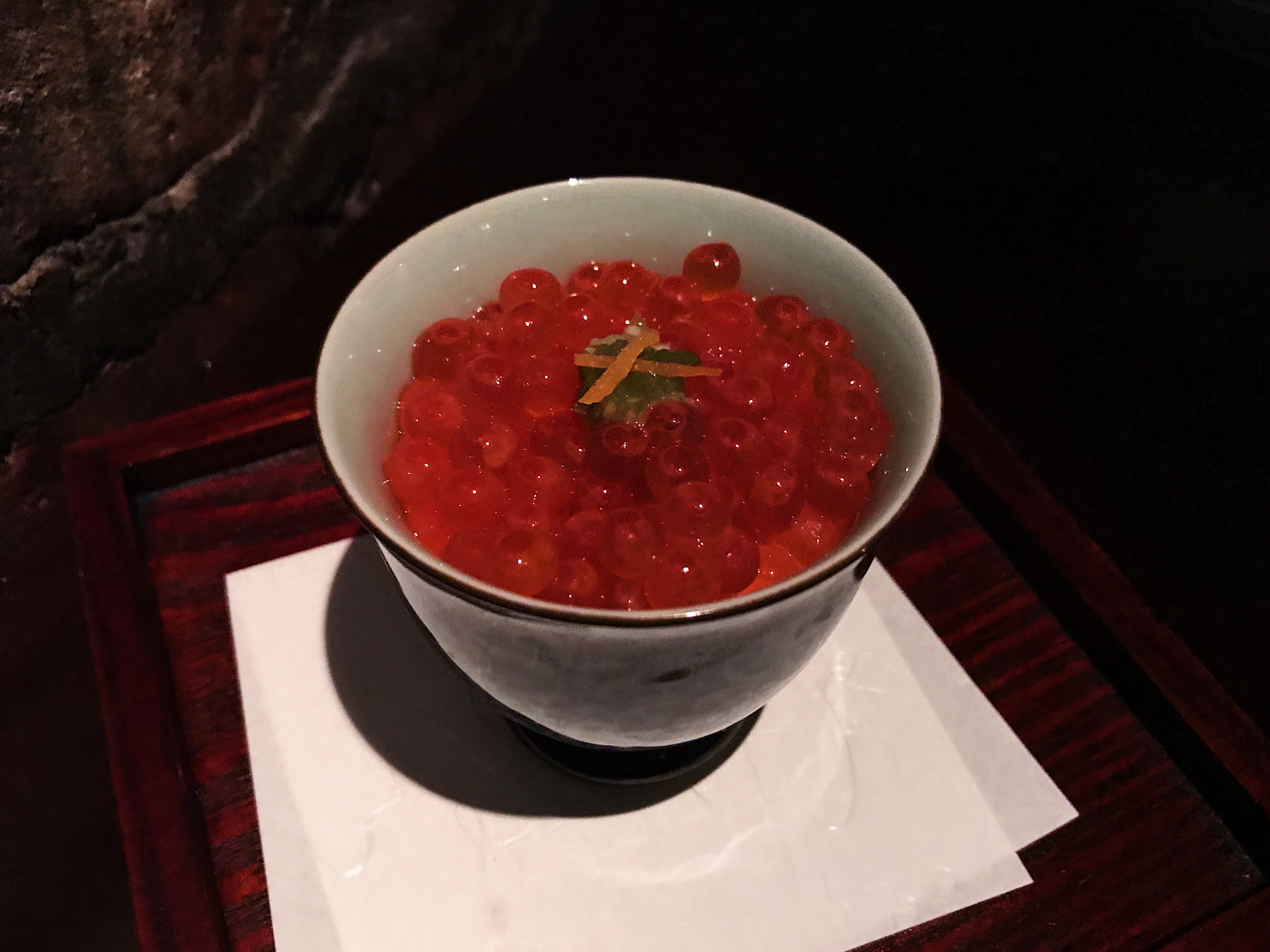 There were two layers: a handful of ikura (salmon caviar) and homemade tofu. I personally liked the tofu more as it was very silky and had the subtle sweetness from the soy beans. Although this dish did not require much cooking techniques, I think it really highlighted the freshness of the tofu and ikura. Sometimes simplicity is the ultimate form of sophistication.